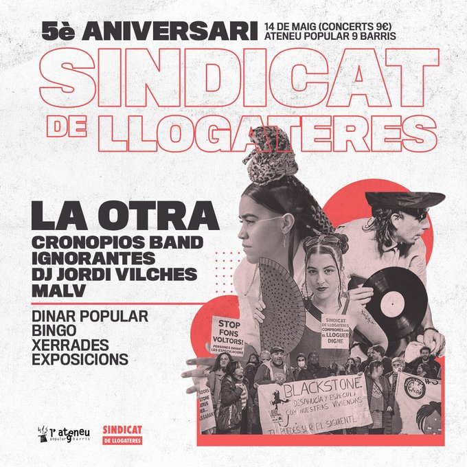 🥘5è aniversari @SindicatLloguer (dinar, col·loqui, concerts...): demà des de les 14 h, preu concerts: 10 €. Info i reserves: https://t.co/gJKYVVlnFm