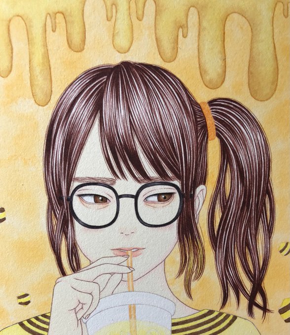 【銘銘浪漫】 F4サイズ カラーの部分は絵具、色鉛筆で、モノクロの部分はボールペンで描いてます。 現在、京都のギャラリーソラトさんのグループ展に出展しています。 7日までになります。