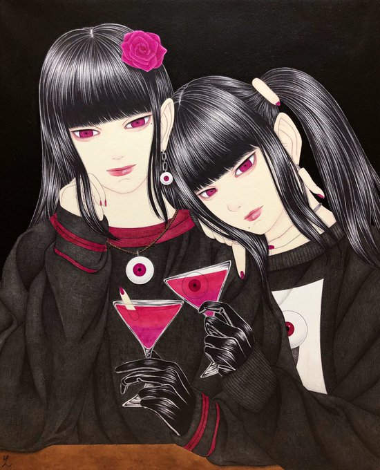 作品【セッション】 目玉の子と指の子を合わせて描きました。 大分変わってますが同じ子です。