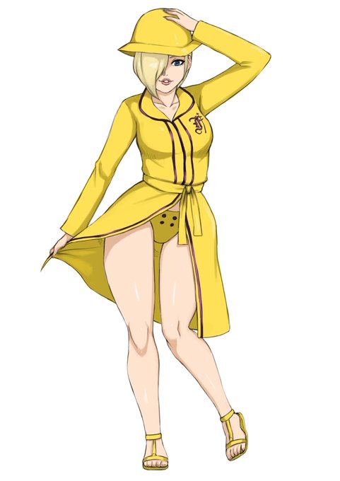 So, for this #falkefriday, I commissioned @DiasRandfordFox to draw her in her vintage yellow swimsuit in any pose he likes. The final piece proved to be amazing.