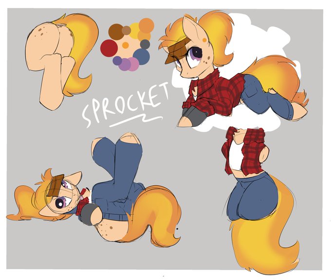 I'm in a good habbit now of redesigning and drawing my older ocs rather then making new ones : D. SPROCKET. She is an extremely gay mare who loves robutts