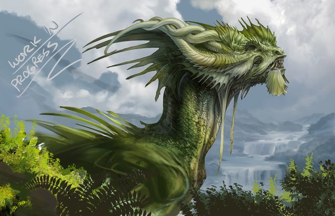 In progress shot of the green dragon for the collaboration with Crystel! I figure you guys have already seen the in-progress sculpt so might as well show the illo too.