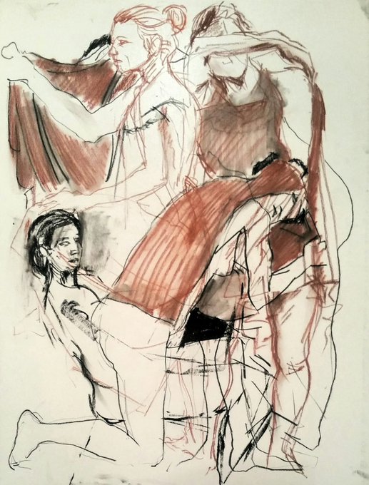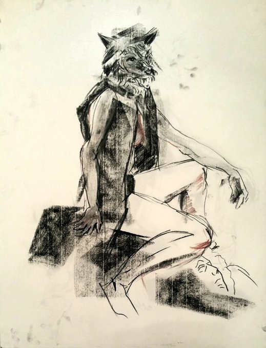 #Nu #6 [#Lycaon];#fusain #sanguine et #pierrenoire sur #papier #format #raisin #Ovide #Metamorphoses