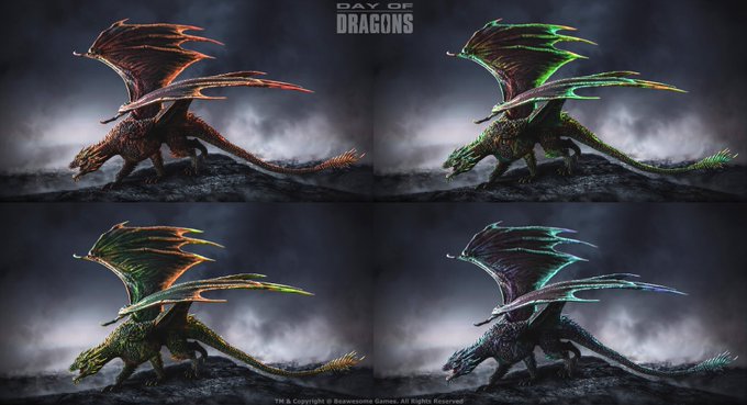 In Day of Dragons, each dragon will have common, uncommon, rare, and exotic skins which will be randomized upon hatching. Take a look at some of the skin concepts for the Fire Dragon. https://t.co/uzK4jK1Xpu
