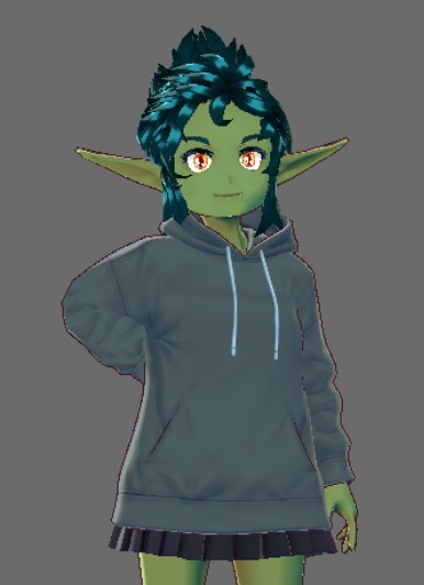 I made a goblin girl in Vroid studio for fun! I dunno what to do with her, but she exists now, and it's her birthday
