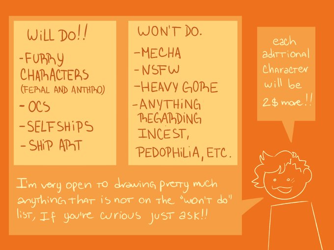 HI small comm sheet update! wanted to put some newer art Plus i'll be adding character refs as an option now! i'll be using p4yp4l only, please dm me if ur interested!! i'll have unlimited slots available, there's more examples of my art on the thread below, rts appreciated!