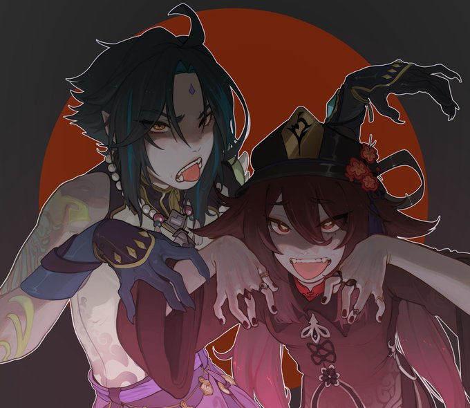 this is my part of an AT with my friend @kabisabi_ una vez más kabi love u bb #Genshin #xiao #hutao