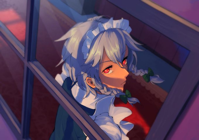 久しぶりに咲夜描きました 月光に照らされている感じです http://t.co/8PzmqFpQqo