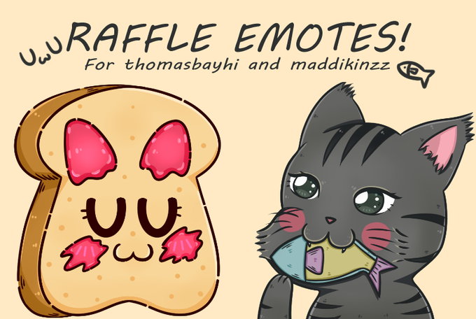 RAFFLES EMOTES are done!! Thank you all for entering. Left for : @thomasbayhi UwU Toast bread.