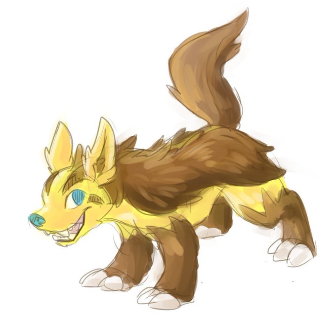 Late to that pokesona party but here's one of muh gals. Her dad's a Lycanroc, hence the teefs.