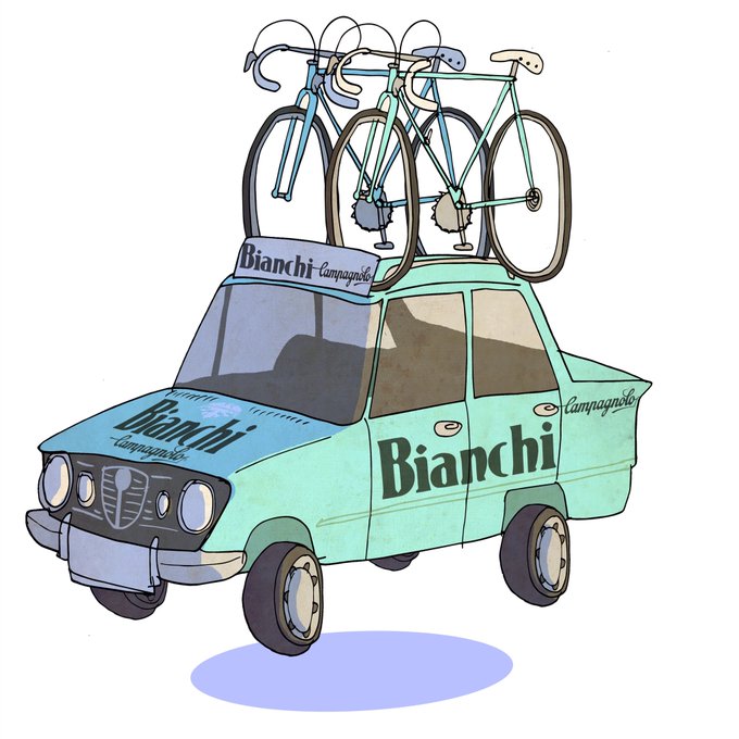Beep beep! Coming through! Enjoying this afternoon’s #stradabianche on the sofa so here’s a #bianchi team car I drew earlier. #illustration #cycling