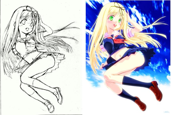 #このタグを見た人はラフ画とその完成絵を見せる