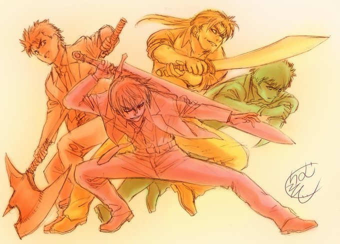 なんか..ギルドっぽい連中です♪ #シャーペン #デジ塗り #落書き #ラフ #創作 #絵描きの輪