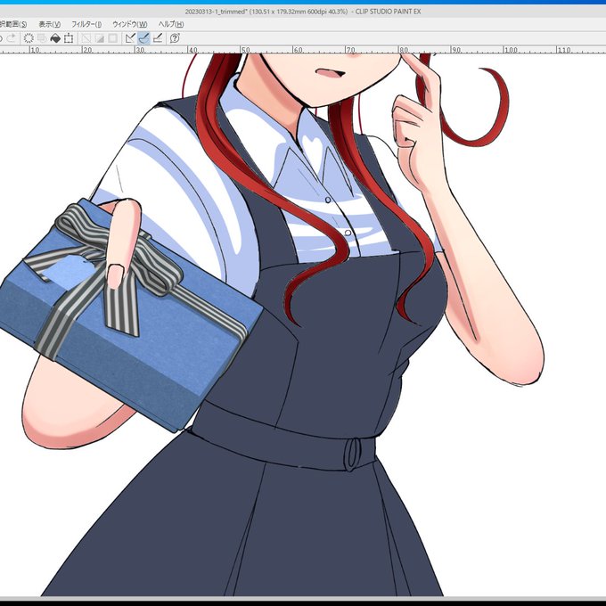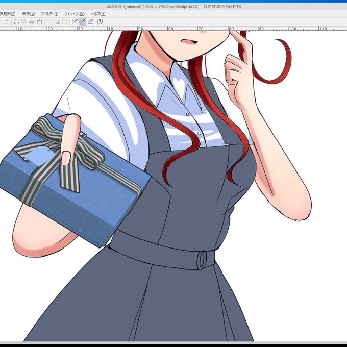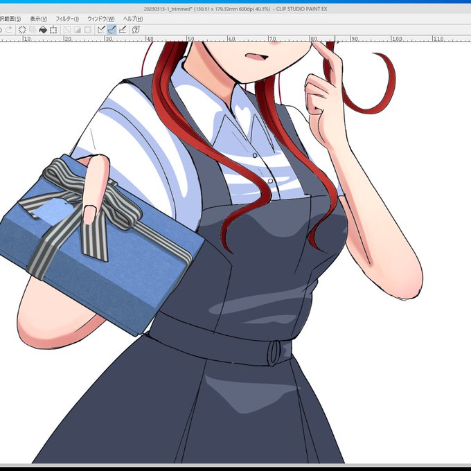 ・スカートの基本色レイヤーを複製、レイヤーモードを乗算、不透明度50%にする。