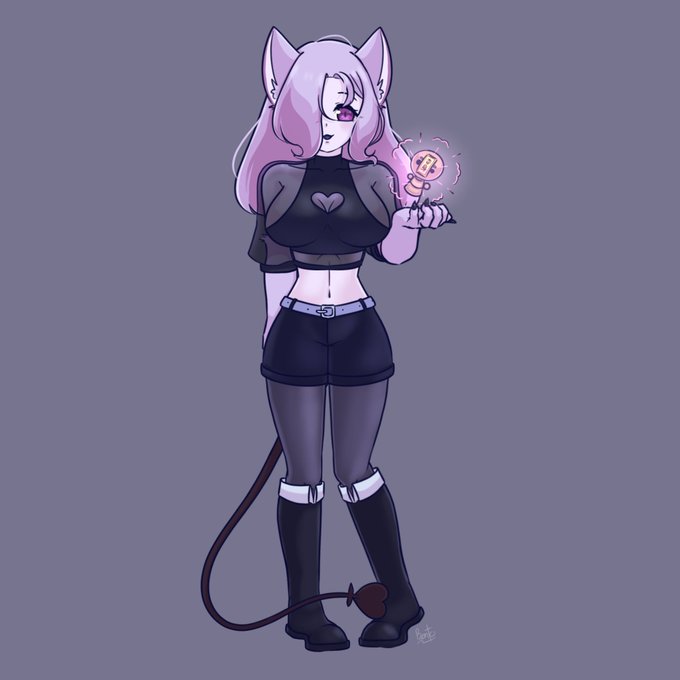 @Neytiirix This is Akudori-chan, the little oni with fluffy ears. Her stories hasn't reveal much. All I reveal is she didn't have a beautiful life in the past, she lost her half left ear and fluffy tail by her sadistic father and She cover her fact with handmade mask to hide her expression.