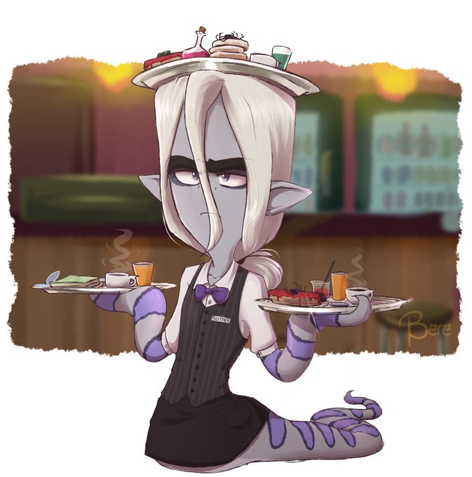 El padre de Slither tiene su propio restaurante, en el cual su hijo trabaja durante las vacaciones o dias específicos como mesero :0