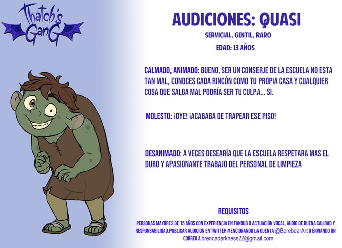 Como siempre, recomiendo audicionar para más de un personaje, puesto que tienes mas posibilidades de quedar. Presten atención a las descripciones de los personajes.