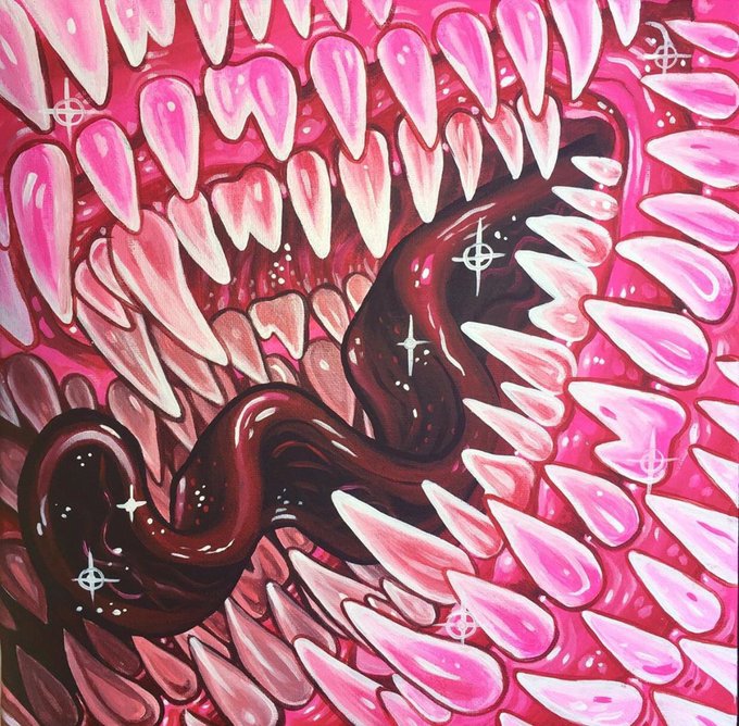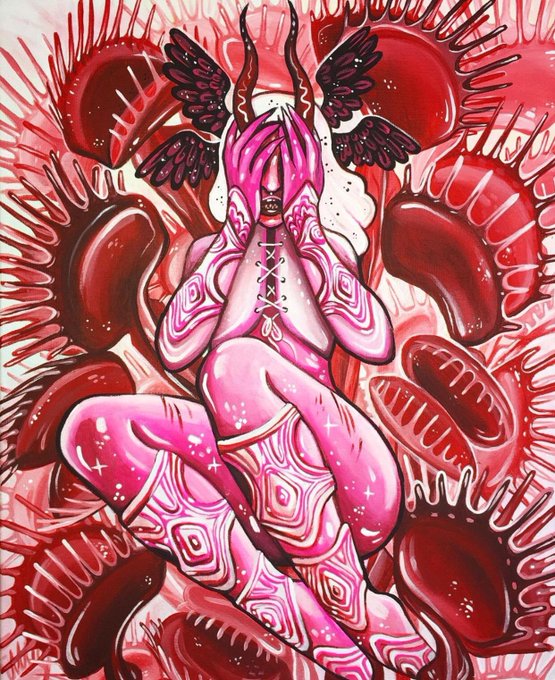 ‘Vicious Bloom’ 16”x20” Acrylic paint on stretched canvas. In a world belonging to nature, where we are just parasites, they are the cleansers. ☠️🌿