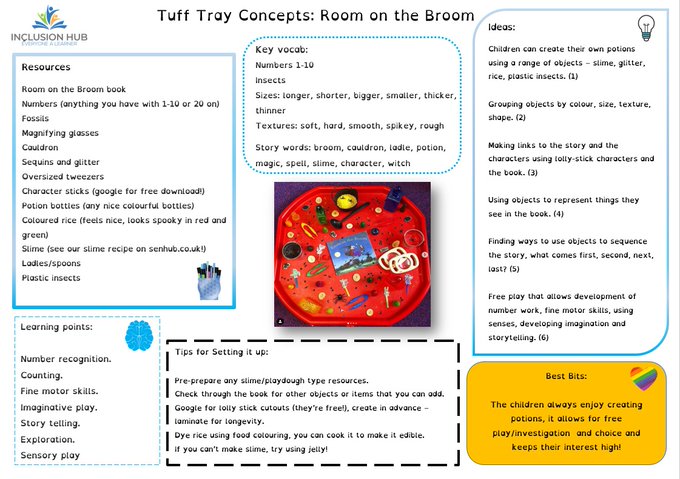 The planning will explain the resources needed, how to set it up, key learning points and vocabulary, as well as how each one meets core characteristics of effective learning. #EYFS #SEN #EAL #TUFFTRAYS