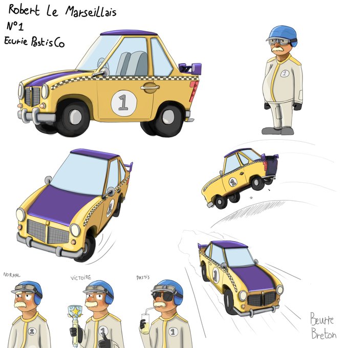 Robert, le roi de Monaco, et sa voiture au couleurs de l'écurie PastisCo.