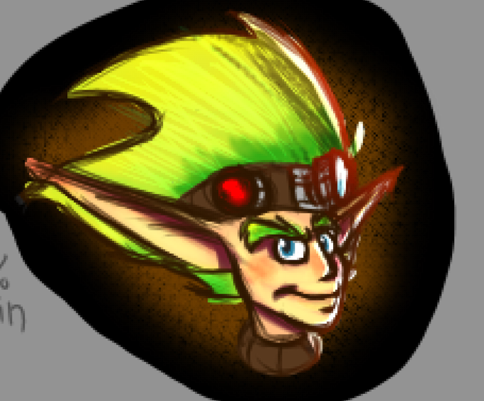 VERY QUICK SKETCH just made a Jak and Daxter oc outta boredom, lil scientist who experiments on whatever gives him the stink eye with Dark Eco, also loves teasing Metalheads. got no name for him at least yet
