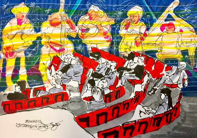 Sktch last night from #bimhuis #amsterdam #art #sketch #sketchbook #lifedrawing #figuredrawing #pen #ink #brushpen #color #jazz #music #love