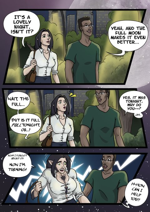 Part 6 of the comic by @Mini__Moe, and by far my favorite page. Never underestimate the power of the super moon. #sizetwitter #growth #werewolf #transformation