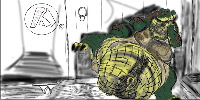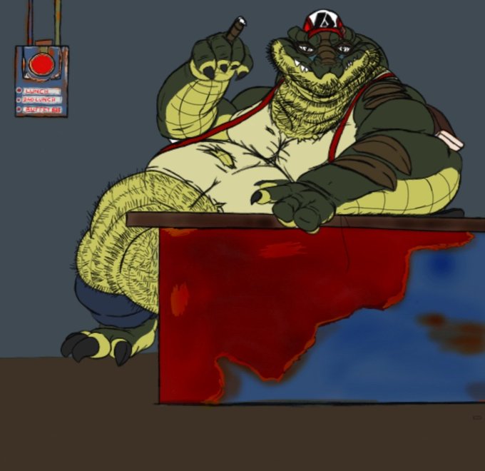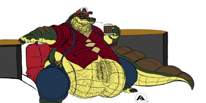 Did a wonderful REQ fur @emerald_folf141 of his sona, (ORIGINAL ART BELONGS TO ©️ @BigPapa_Gator , OC BELONGS TO ©️ @emerald_folf141) Enjoy seeing his Fatass!