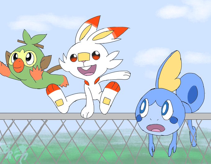 Drawing of the three starters from sword and shield.