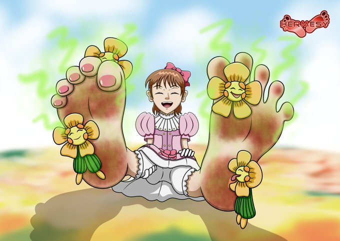 Art Trade with my awesome pal @Zeeahj1 featuring Gerda from Yuki no Joou (Snow Queen) showing her cute feetsies on a garden full of beautiful flowers