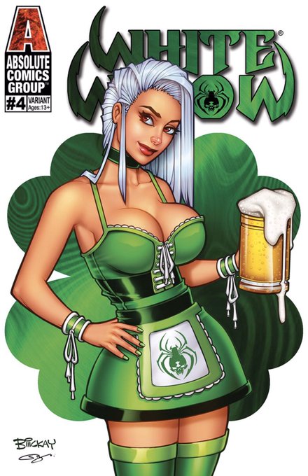 White Widow St. Patrick’s Day for Absolute Comics. #pencils by me and #colors by @sanju.n84 https://t.co/T7nacuNal0 #comics #independentcomics #pinup #pinupgirl #stpatricksday #whitewidow #barmaid #beer #clover #fourleafclover #art #comicart