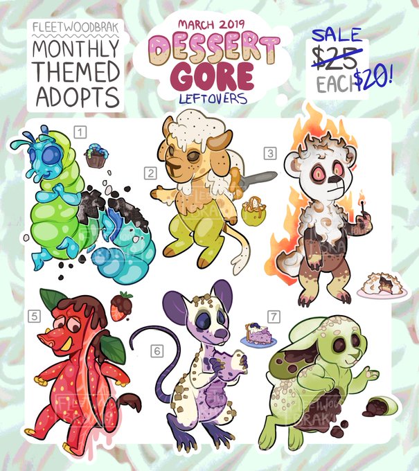 Leftover Sale! Themed Adopt Sheet -- March 2019-- 🎂 Dessert Gore 🍰🔪 Now $20 each via Paypal :) Design changes are ok, comment or DM to claim!