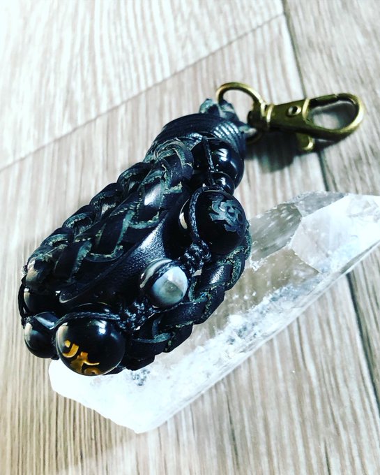 オーダー頂いたストラップ! 友達に見せたら呪具と言われました笑🤭 梵字と四神のパワーストーンをレザーでどーのこーのしたヤツ✨ #オーダーメイド #四神 #梵字 #ストラップ #呪具 #レザークラフト #パワーストーン