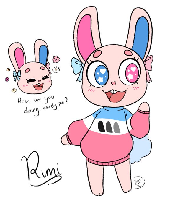so a while ago, i did the animal crossing meme on DA and here is my villager! Rimi is a cotton candy themed peppy villager, who loves cute stuff and fishing.