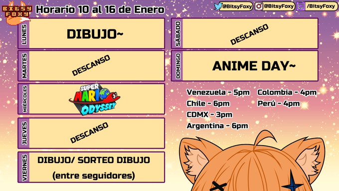 El horario de mañana y el de la próxima semana~ Acabaremos los 3 OC que faltan, veremos #ShingekiNoKyojin y #kimetsunoyaiba Recuerden que para participarn en el sorte de dibujo deben ser seguidores y tener más de 20 min en el stream~ #Vtuber #VTuberES