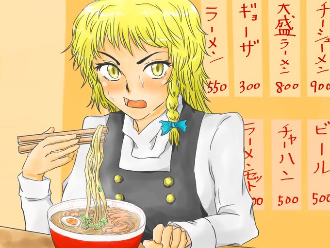 まだまだ暑いなぁ。でも何か気分的にはその辺の中華料理屋でふっつーのラーメンをさささっとお腹に入れたい気分。魔理沙もチャチャっと食事するタイプかな?