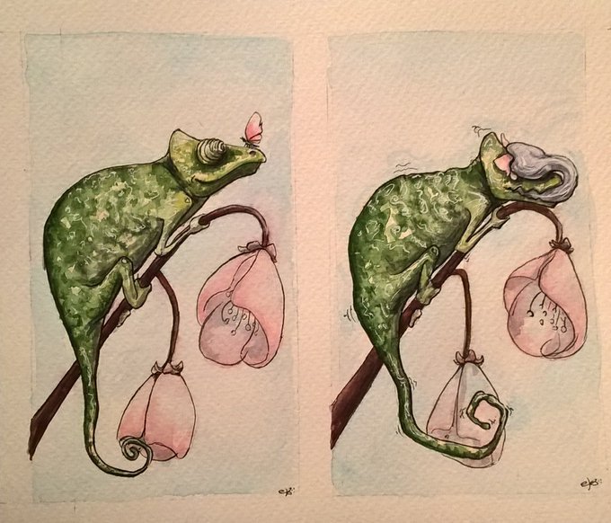 Hello friend;) #chameleon #butterfly #watercolor #illustrations