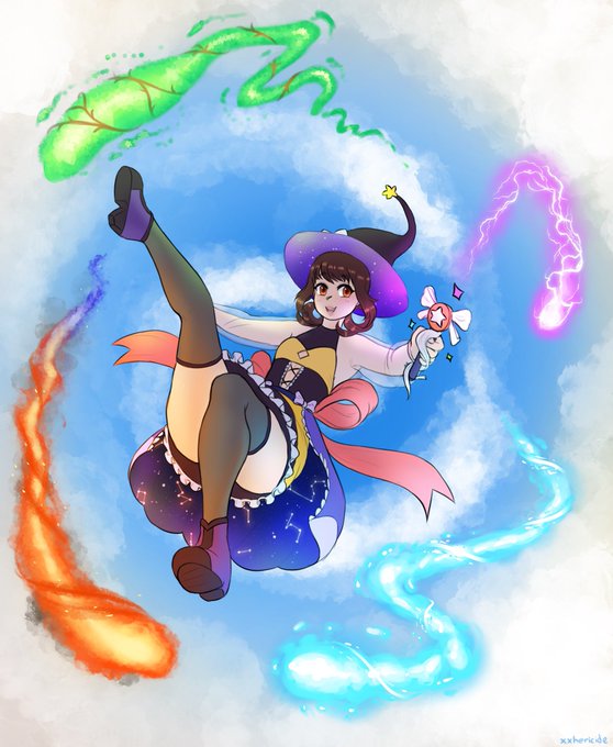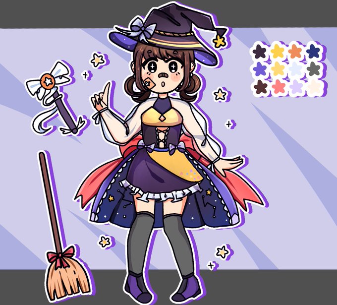 @Not_Your_PA This is my dork mage Emilia Starsong (Emi for short) she’s bad at magic but she tries really hard. Her mom is a seamstress and made her outfit for her, she’s very supportive of her daughter.