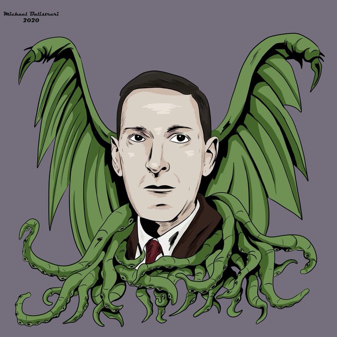 Today's daily drawing is H. P. Lovecraft wrap in the tentacles and wings of his creation, the Cthulhu.
