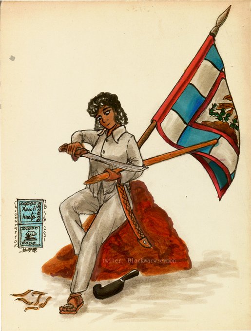 Mulata o Zamba en el ejercito de Morelos en la #IndependenciaDeMexico (1814). De fondo la bandera nacional según el Congreso de Anahuac
