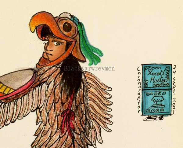 Hace tiempo dibujé el capítulo final de esta serie versión códice. Hoy que practicaba poses del uso del Atlatl (lanzadardos) para trabajos futuros, decidí terminar uno de los bocetos como tributo a la serie, a Chris Yukine y a mi viejo re-diseño.