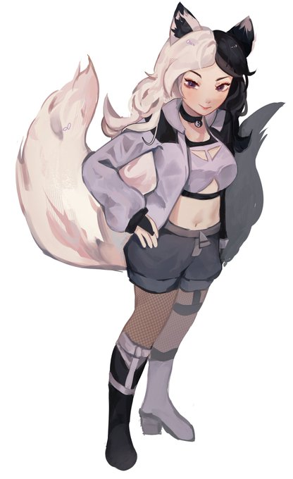 tysm for the amazing commission! they drew my gorl in both of her outfits :D