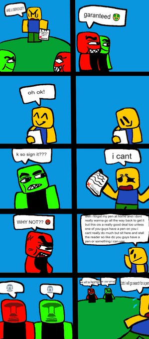 so like i've been working on a shitty TGT inspired/parody comic based off roblox and its shenanigans for a few days called "Noob Gets Scammed" (NGS) and i hate it so enjoy!!!