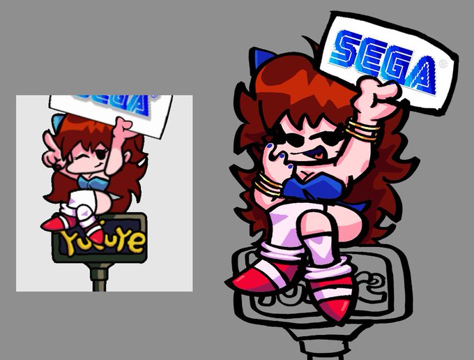 cool "Sega GF" design (made by @StickNickSeries) i made art of from a mod I help work on (@megacdlockedon)!! Keeping her the same while also adding my own little twists on her!!