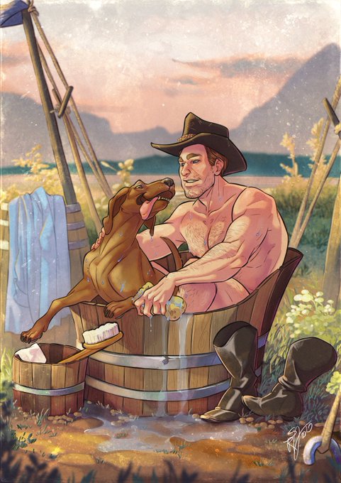 'My dog Copper used to take baths with me when he was alive.' my second piece for @TheRedDeadZine 🐶💦