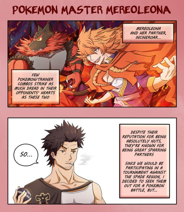 More Black Clover x Pokemon! This time featuring birthday girl Mereoleona Vermillion and her partner, Incineroar!