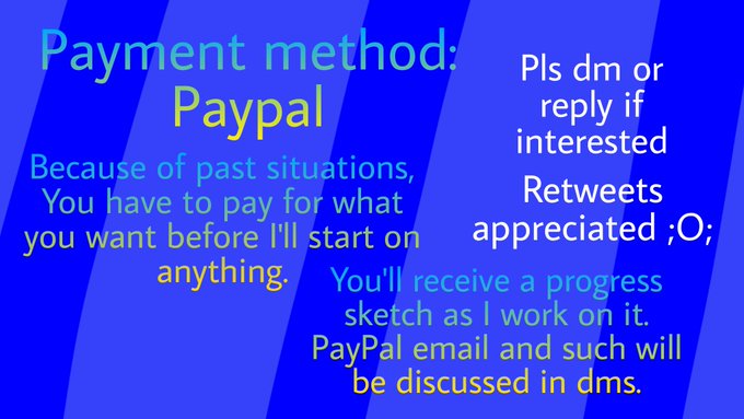 Here goes;; New Commissions sheet!! I'm back doing these. PLS READ ALL OF THIS BEFORE REPLYING OR DMING.
