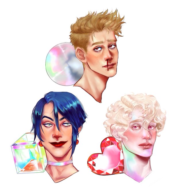 Three recent character commissions I did for @DRSchuldenfrei for her upcoming novel 'Liminal Hearts'! I had a lot of fun drawing these three. :)