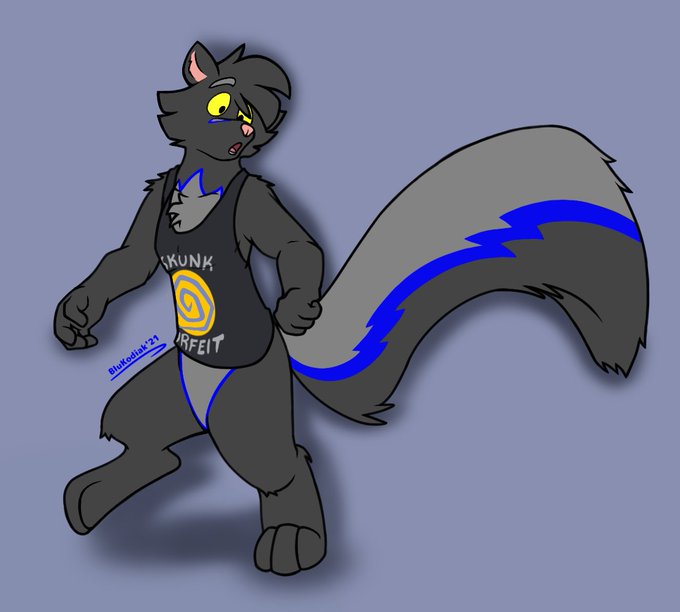 Also, here's another ych in @xbluedudex's skunky shirt done! This time it's yours truly... @DuskiSnowtail! Now he's three in one!