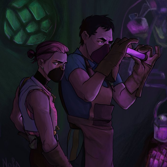 Vi and Syd, crafting medicinal shimmer together, a spoiler-y fanart for Fathers and Daughters. Much to look forward to! #Arcane #ArcaneVi #arcanefanart